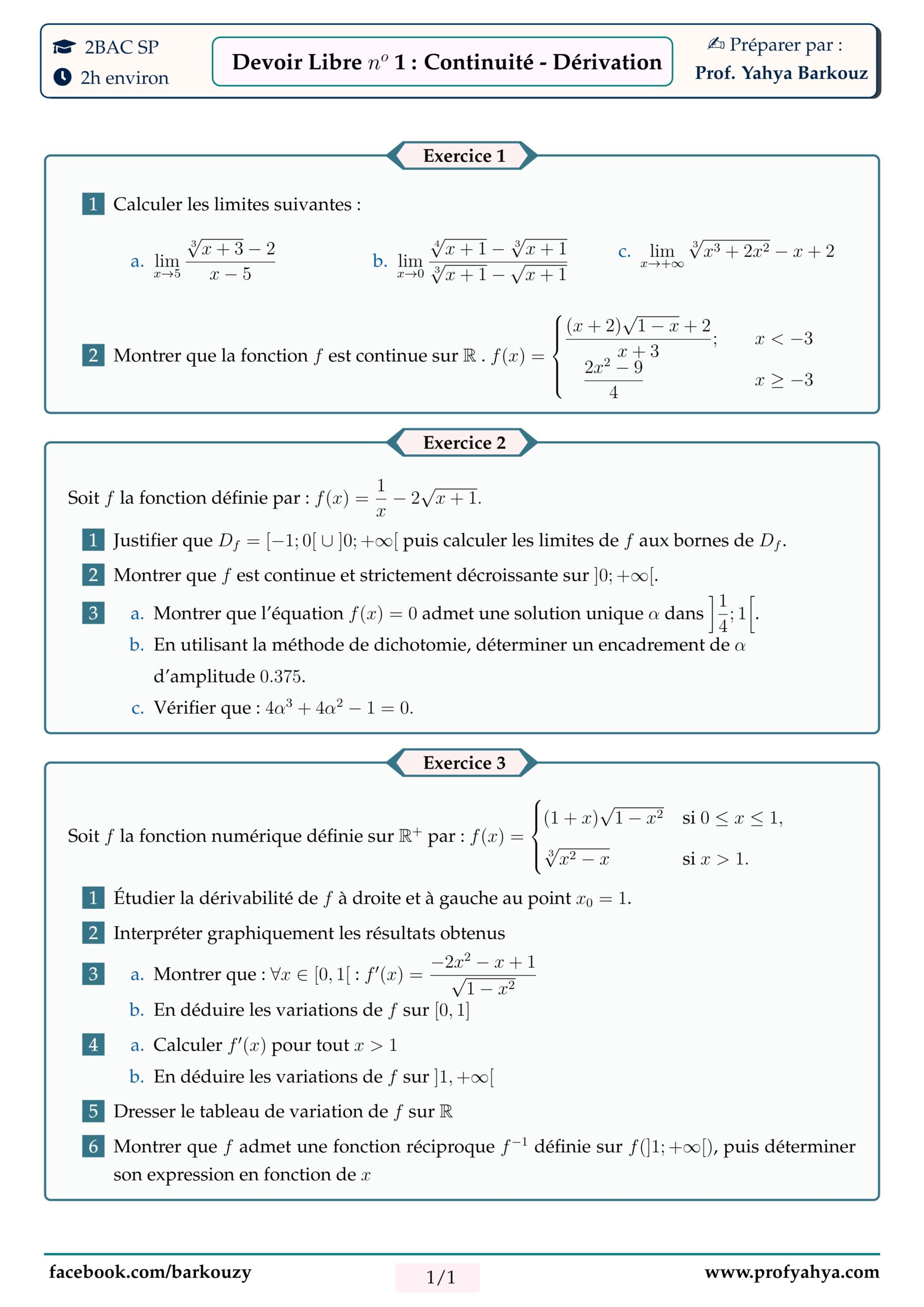 Devoir Libre 01 – Continuité et Dérivation